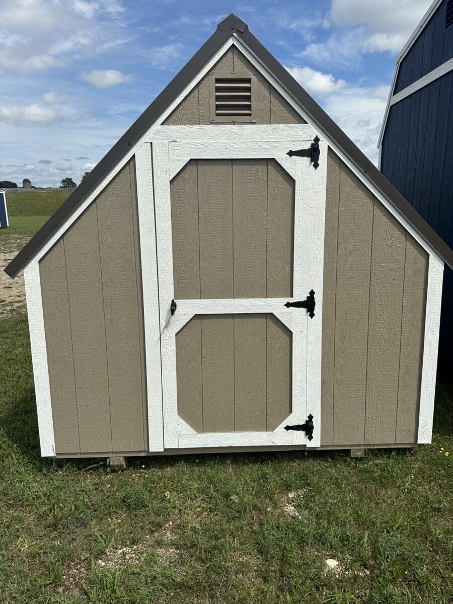 Building Specifications: Buckskin painted siding – White trim – Burnished slate metal roof – Treated Floor